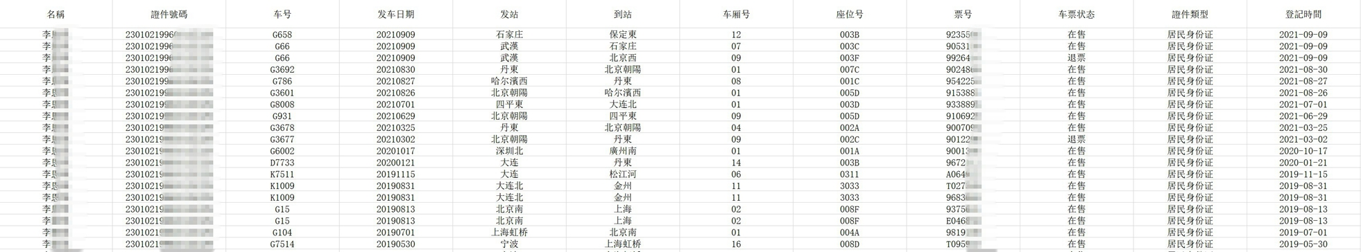 查询国内的飞机、火车记录,不包含境内飞境外的航班,如果要查国际航班记录,请看下一个项目——出入境记录。